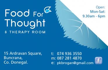 Remember you really are what you eat, so what you eat has a direct effect on how you feel and function. Our body is an incredible regenerating organism that is constantly self –regulating and rejuvenating, our skin renews itself every 21 days, bones repair in 6 weeks, our gut lining replaces itself every 4 days, In 5 years we are almost a completely new person, so without the right nutrients this process becomes impaired. Thats why Food for Thought are happy to help with any Health Food or Nutritional information requirements.